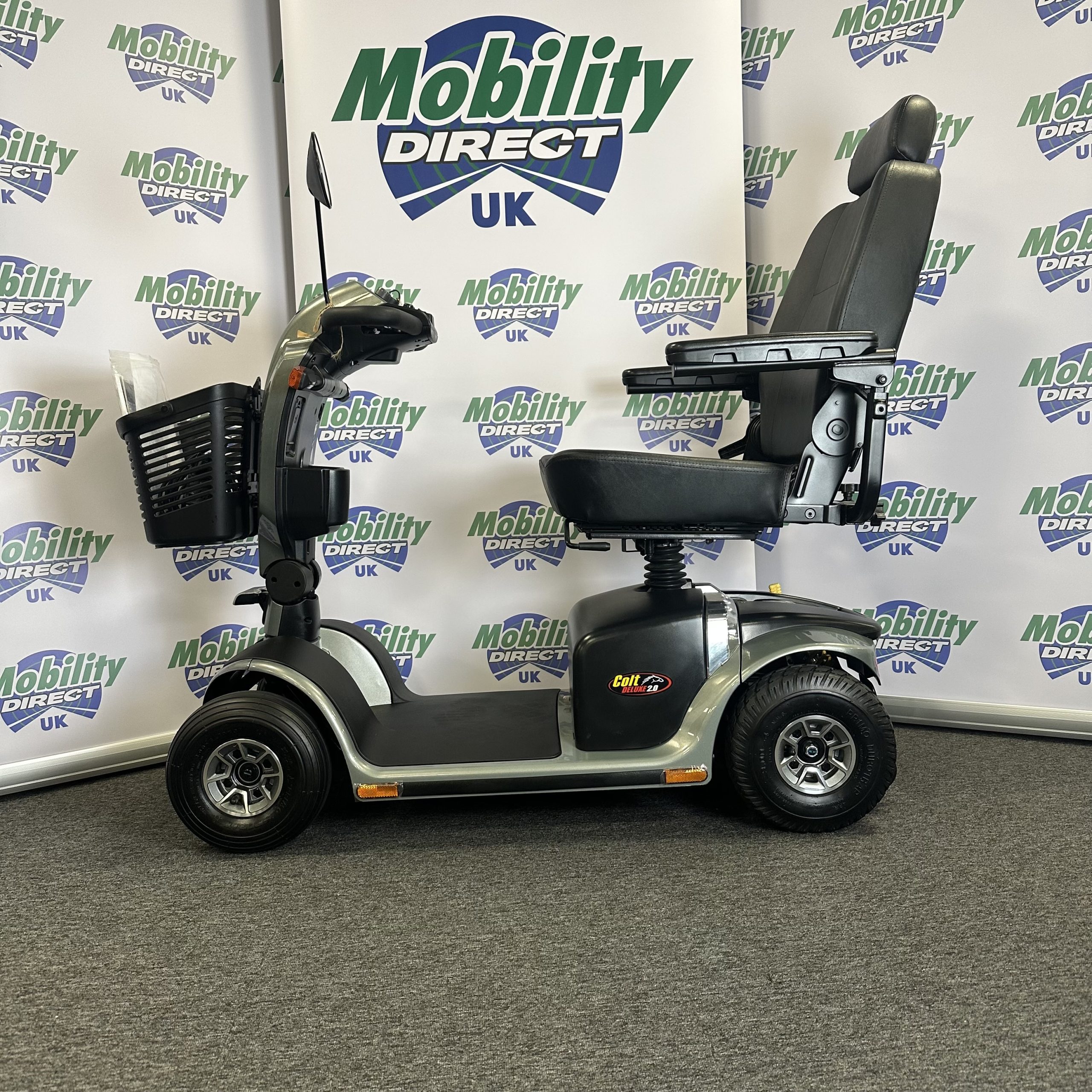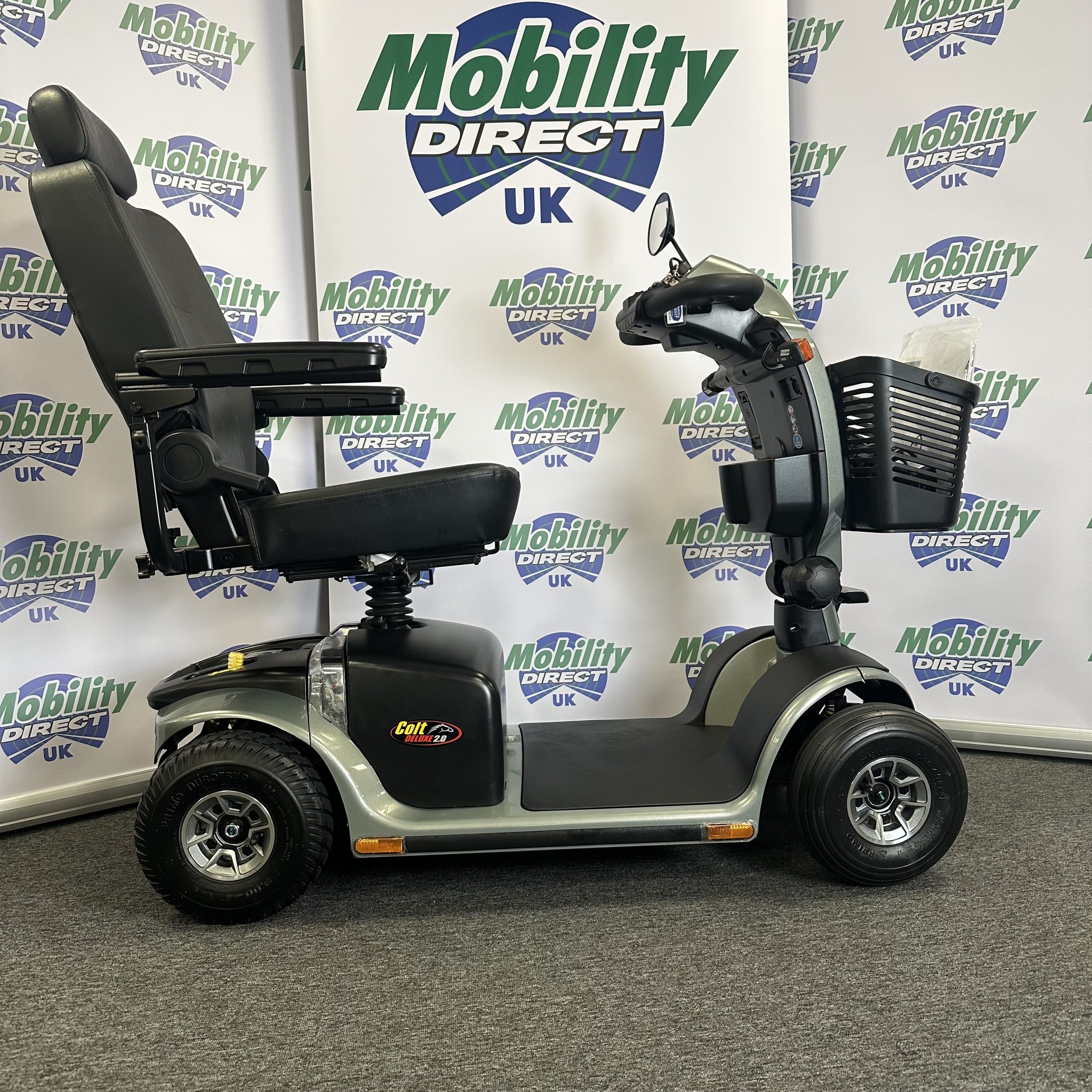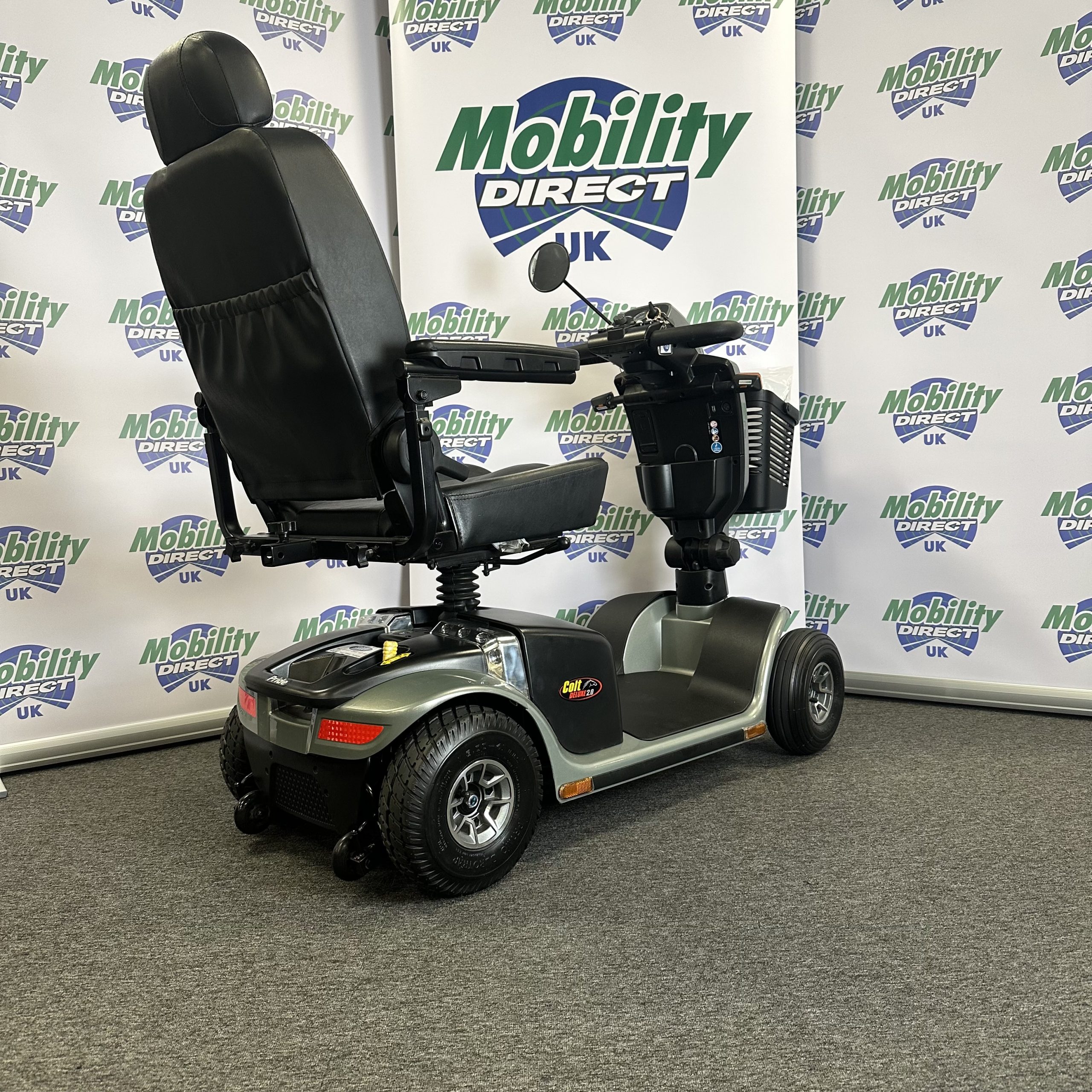 The sleek, sporty 6.25mph Colt Deluxe 2.0 mobility scooter delivers smooth performance and all-new advanced standard features including front and rear suspension, high-visibility automatic brake lights, feather-touch disassembly, an LED kerb light and a wraparound delta tiller. The easy to use delta tiller control system is quick and easy to use and allows simple control that suits your needs.