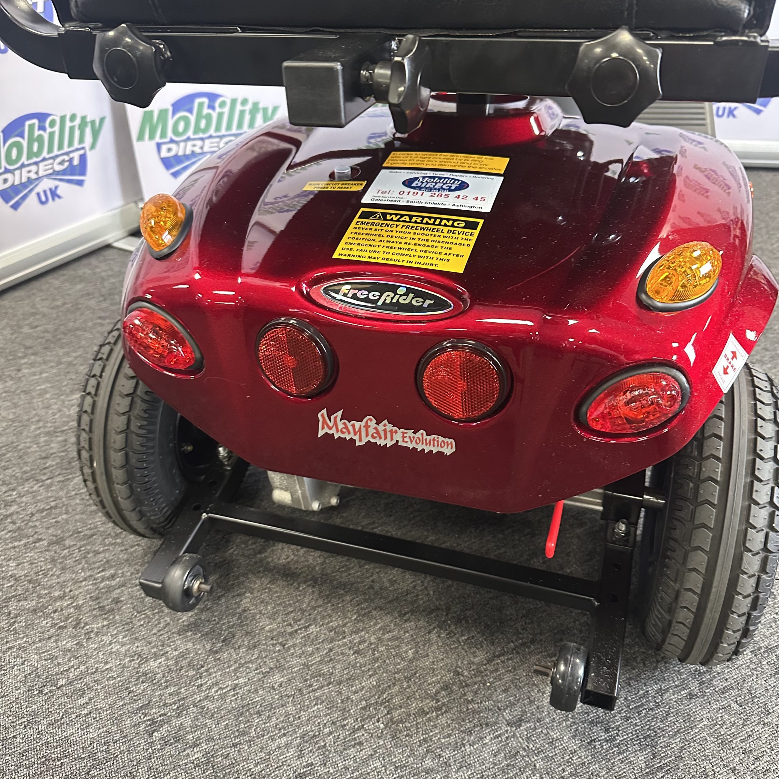 Welcome to the sale of our pre-owned Freerider Mayfair 4 Evo mobility scooter in red with 90 day warranty included and free delivery!!!!