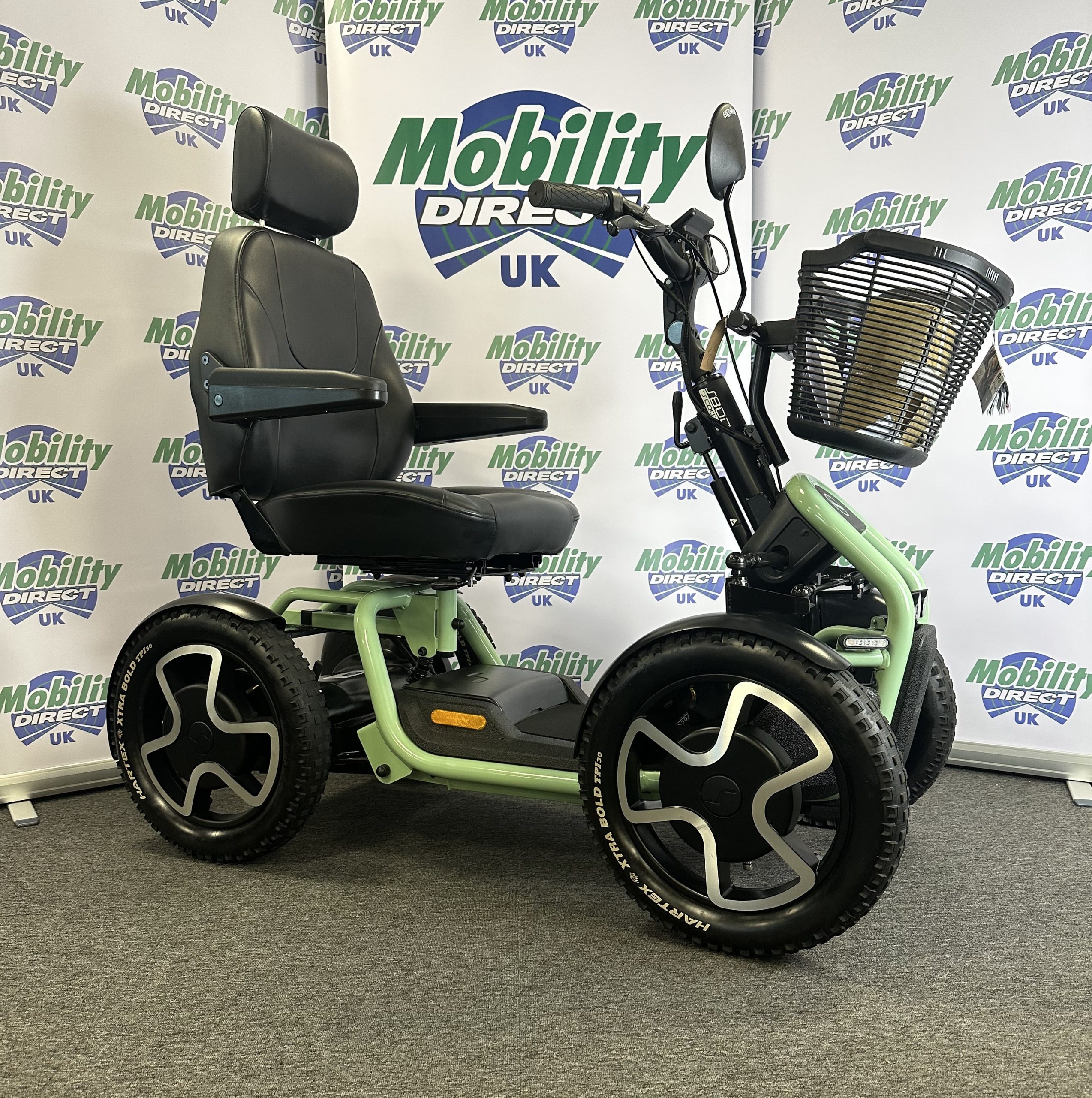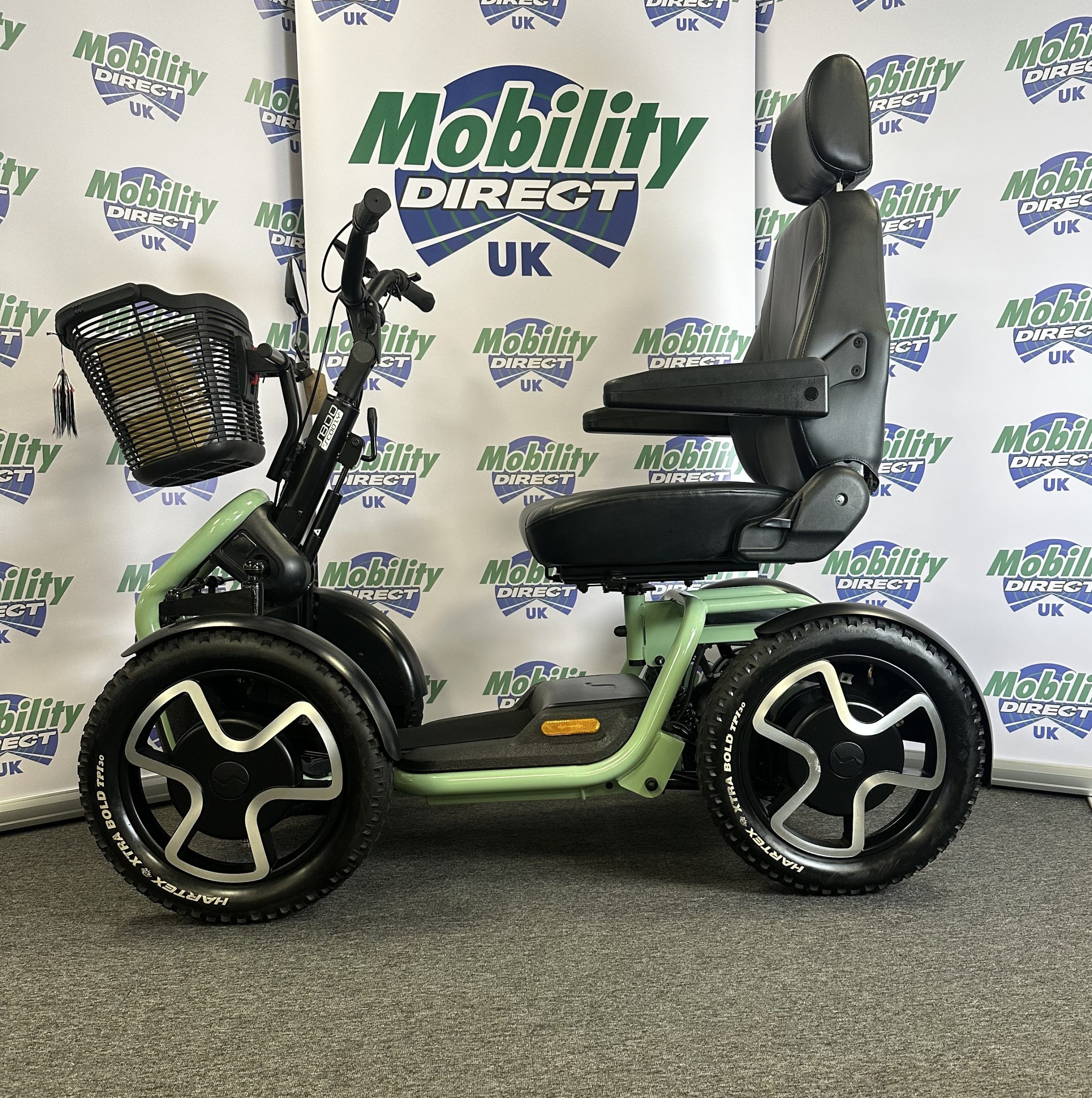 - Large 18” off-road pneumatic tyres for excellent grip and control