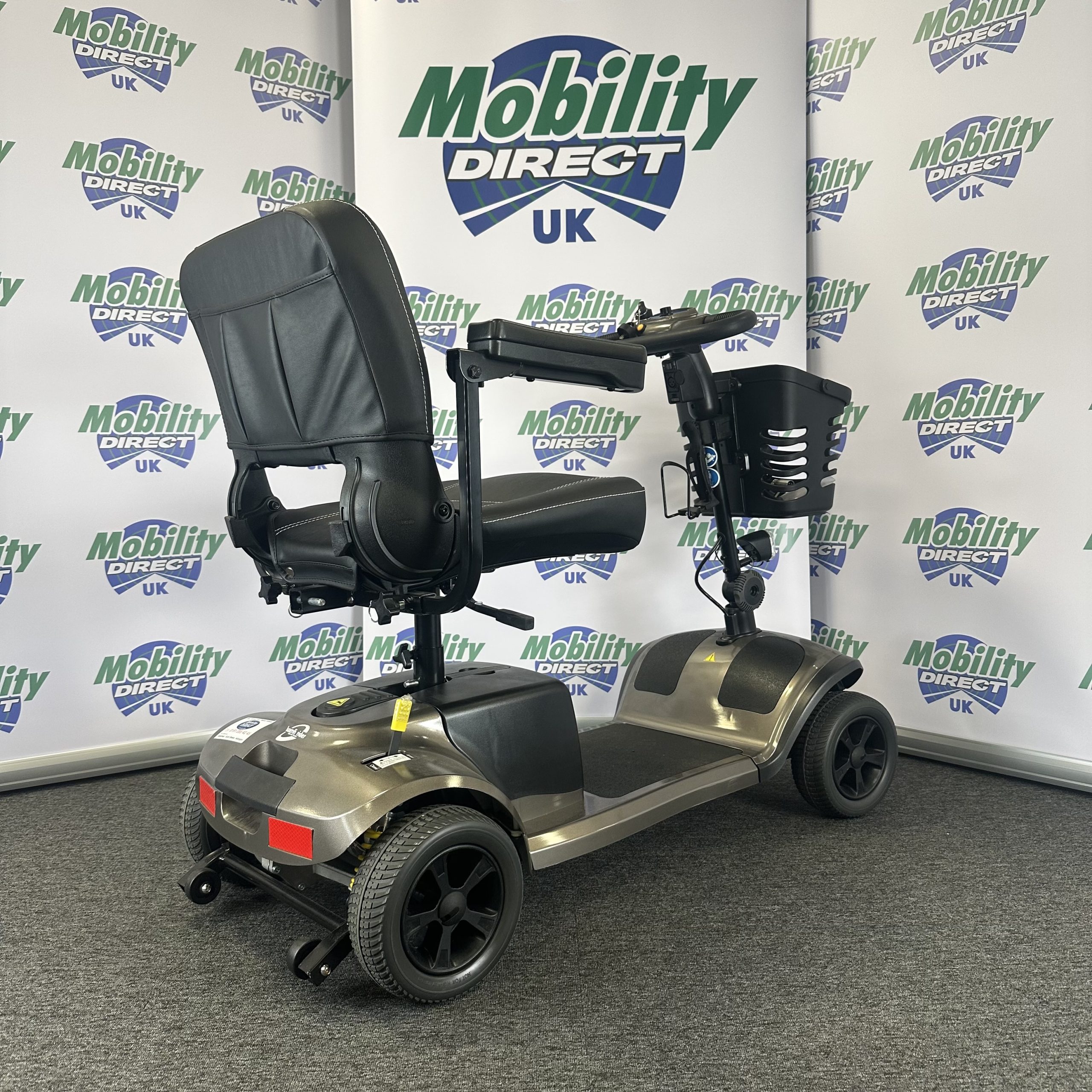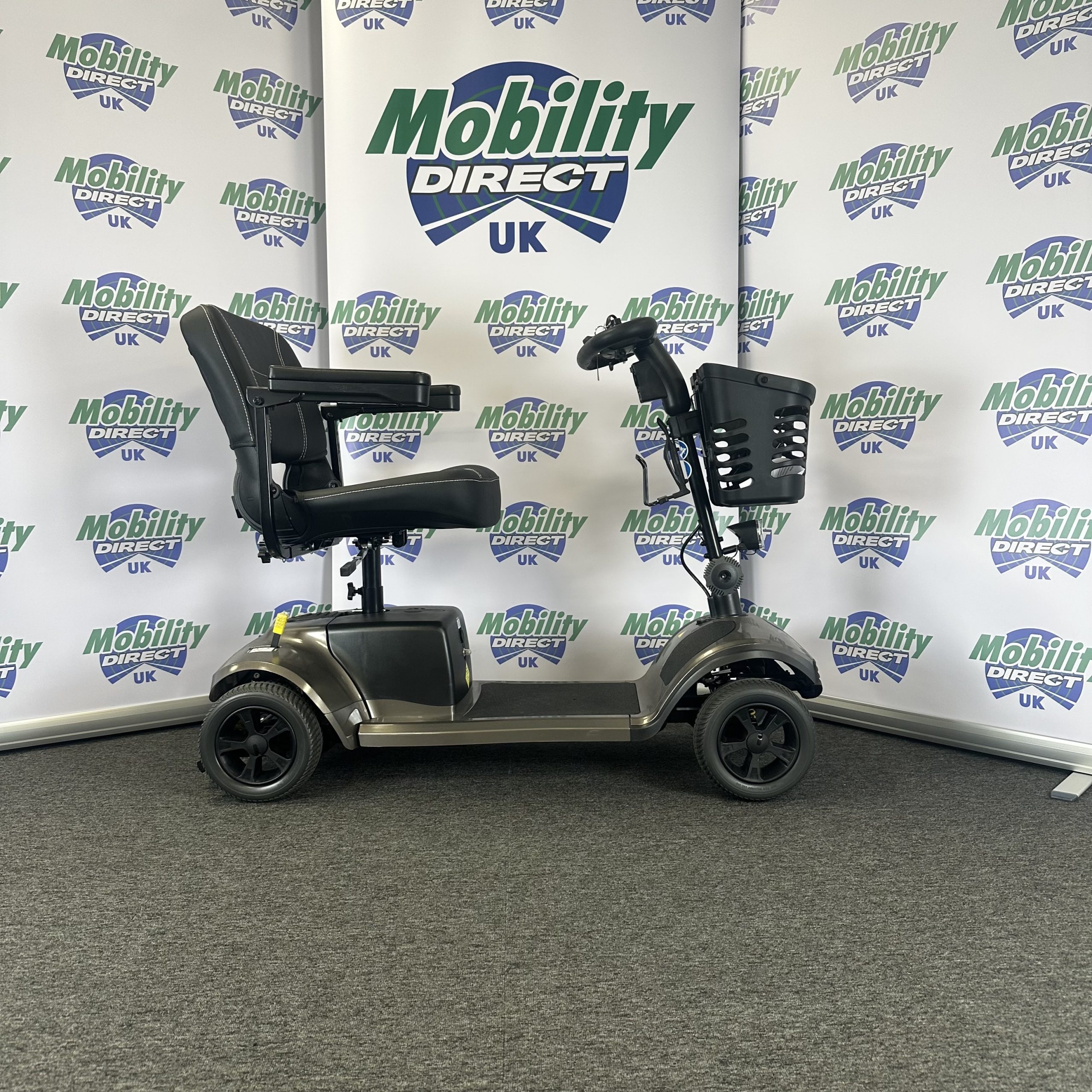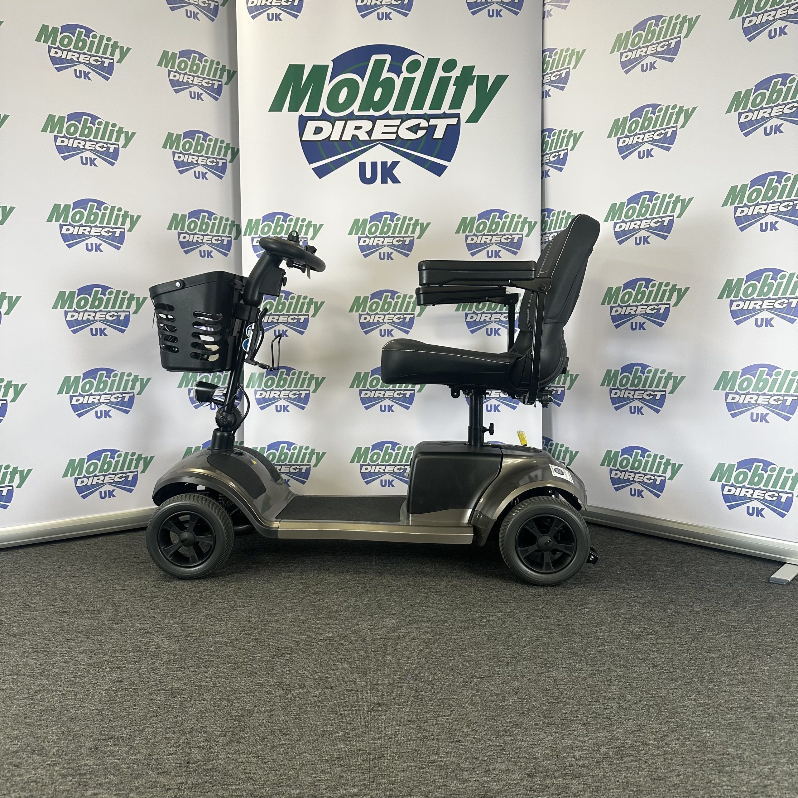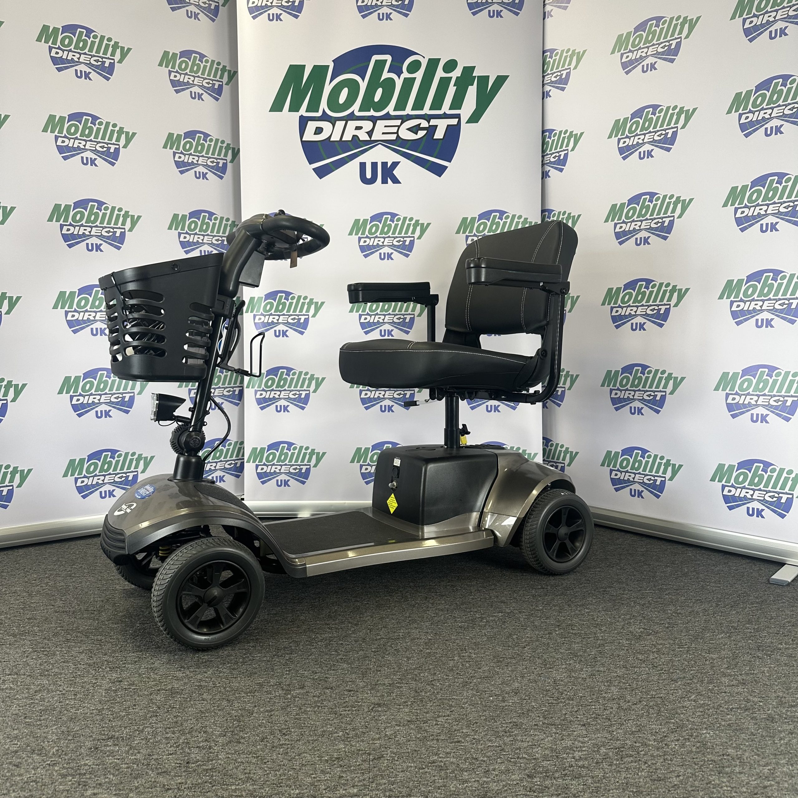 This scooter offers a comfortable padded seat, supportive armrests, and smooth handling on a variety of surfaces. Its simple-to-use controls and responsive steering provide confidence both indoors and outdoors. With a maximum user weight of 26stone the Vantage is one of the most capable take-apart scooters available. It has a 4mph maximum speed and a generous range of up to 16 miles (model dependent).