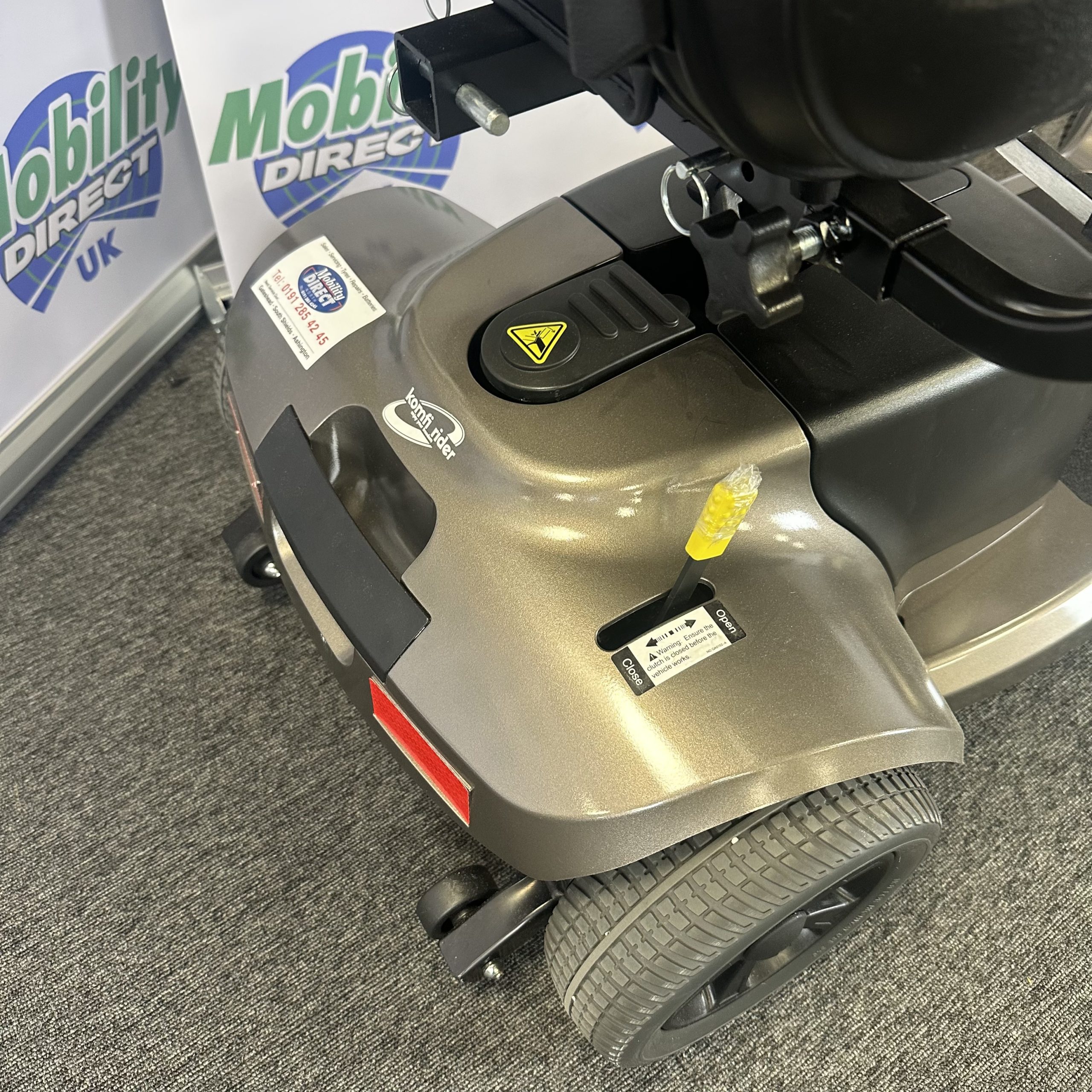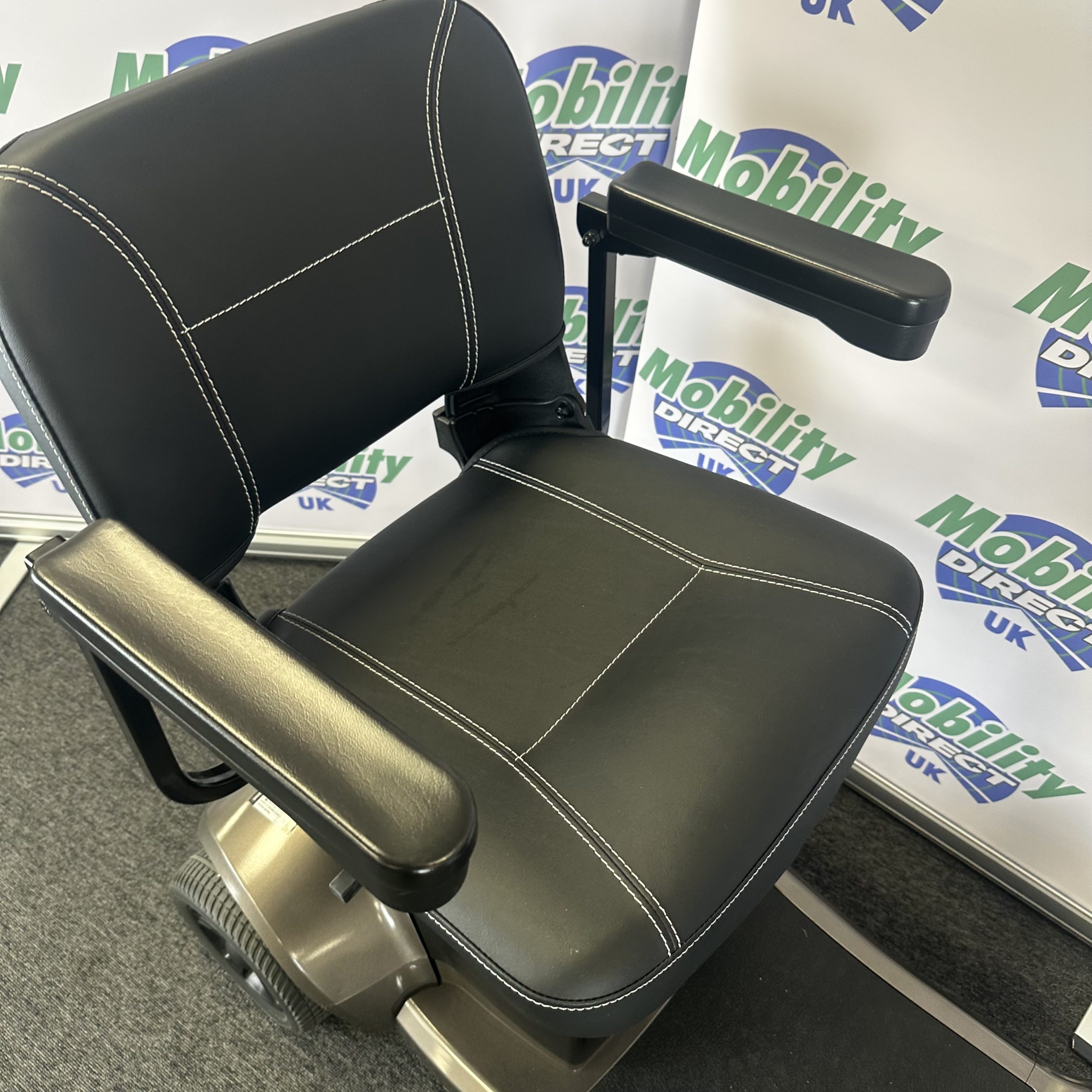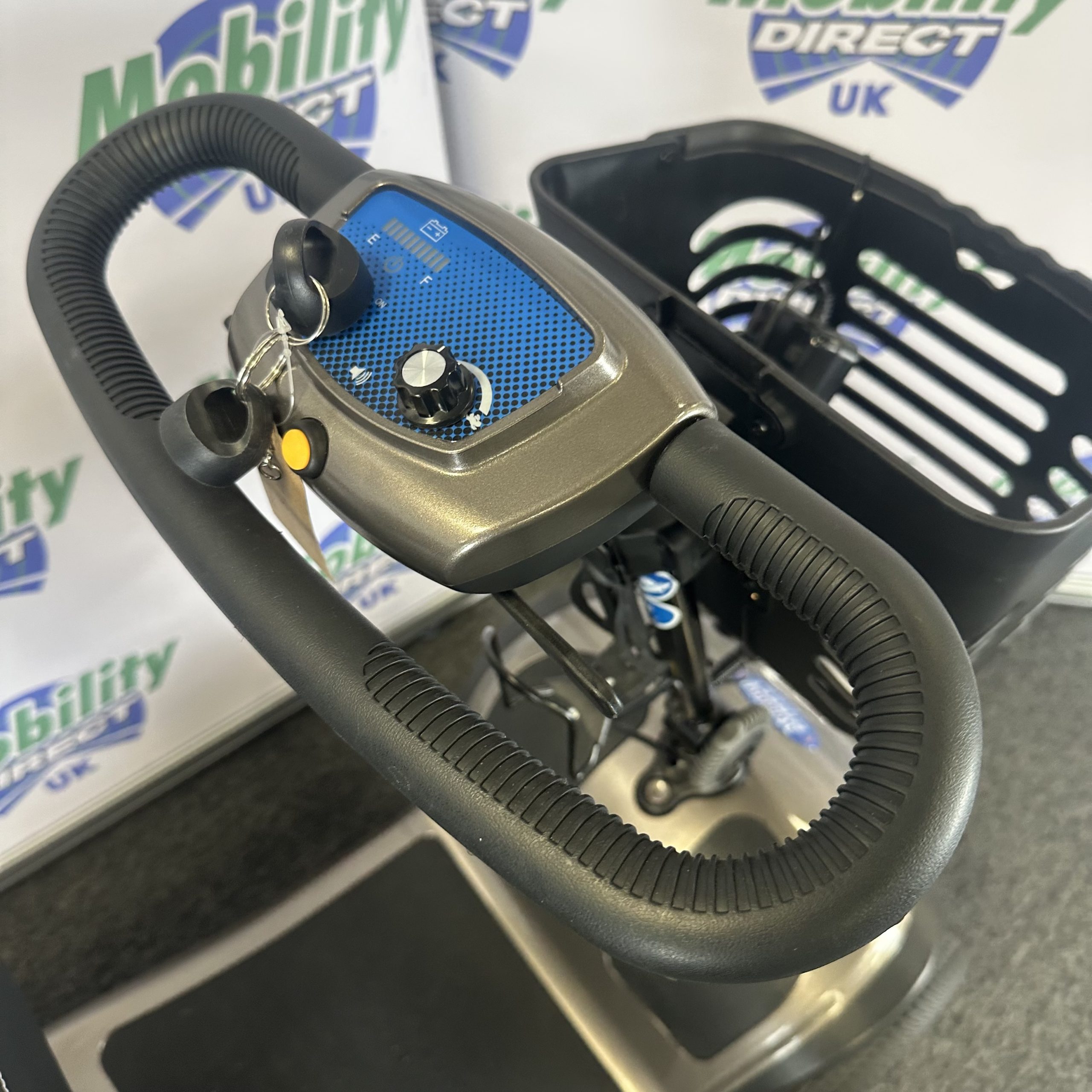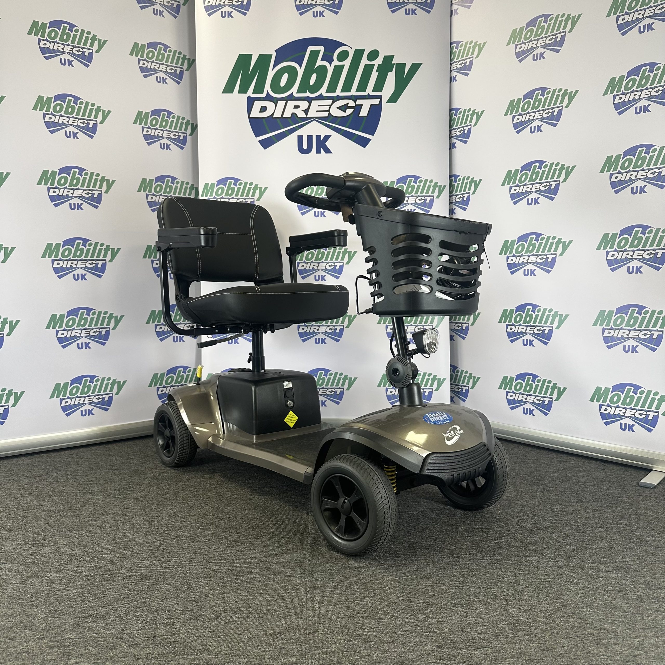 This scooter offers a comfortable padded seat, supportive armrests, and smooth handling on a variety of surfaces. Its simple-to-use controls and responsive steering provide confidence both indoors and outdoors. With a maximum user weight of 26stone the Vantage is one of the most capable take-apart scooters available. It has a 4mph maximum speed and a generous range of up to 16 miles (model dependent).