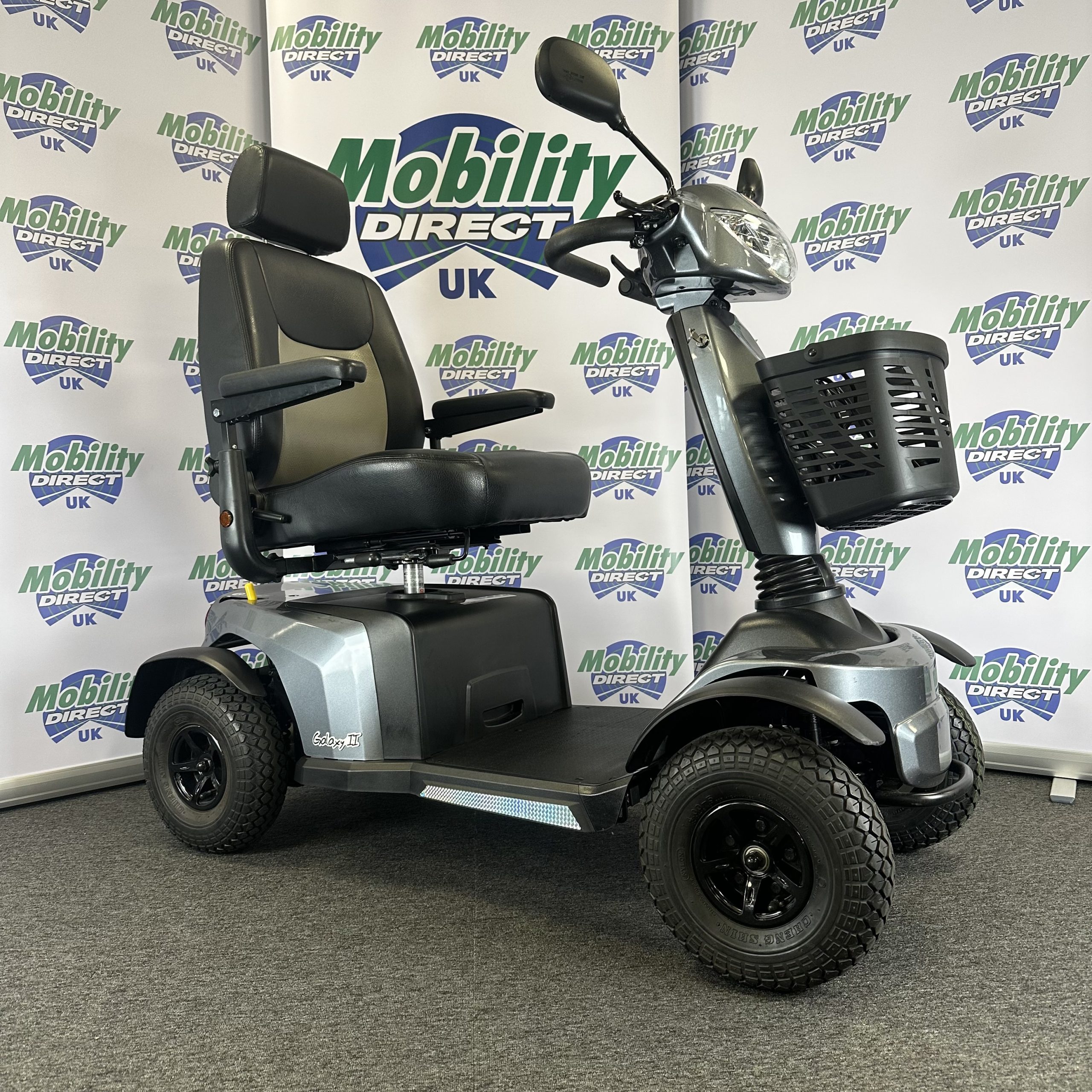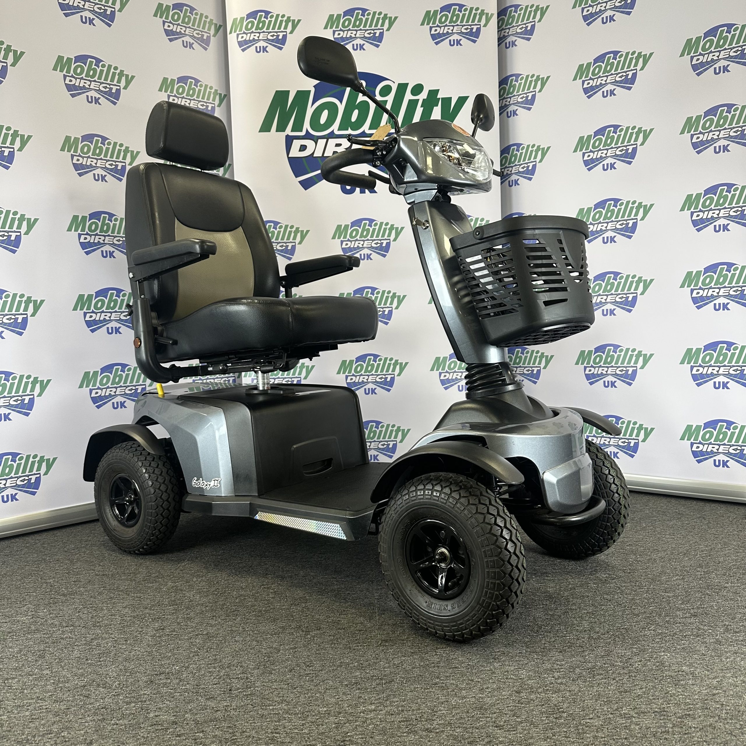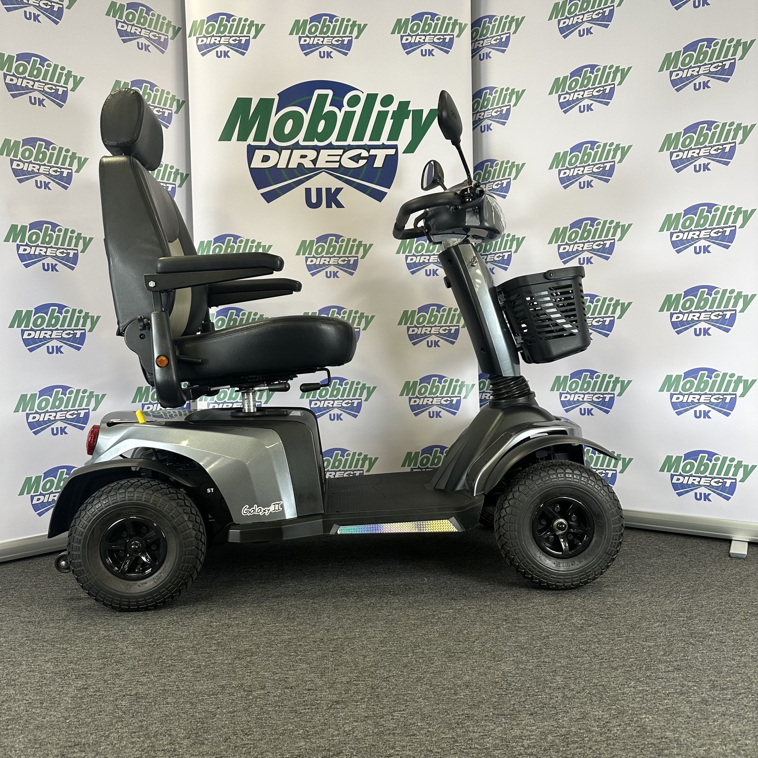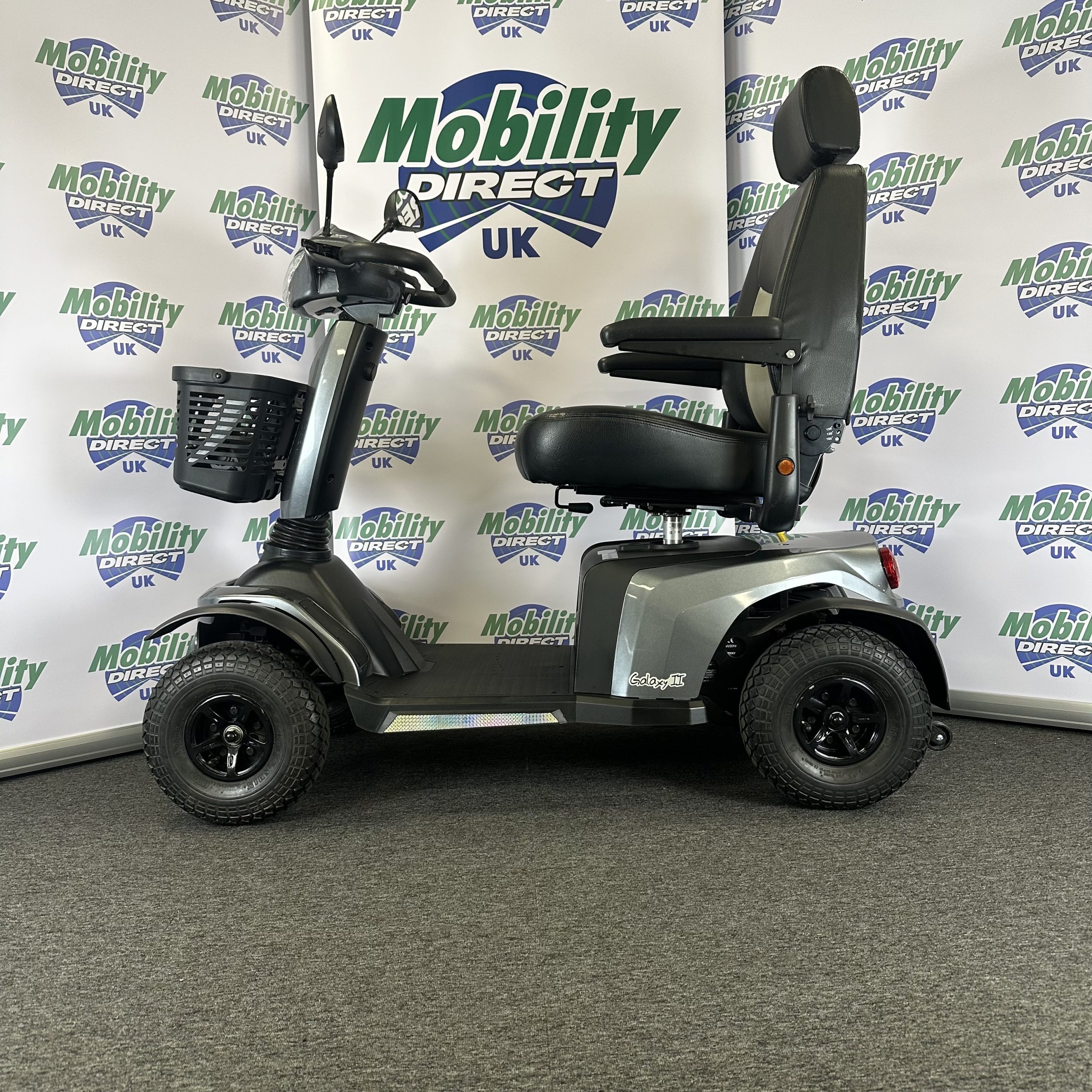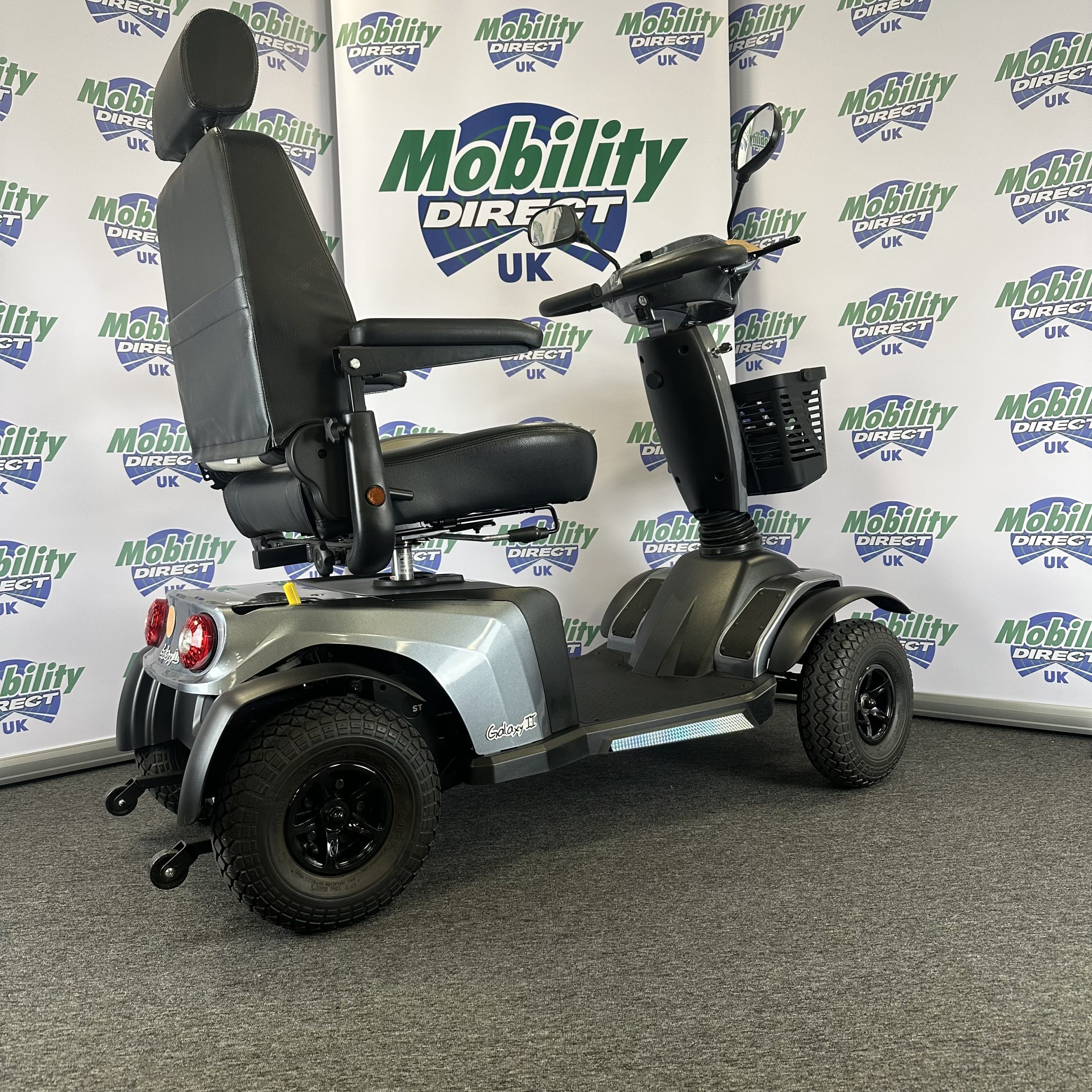 The Galaxy 4 is a super smooth, modern, 8mph mobility scooter that is ideal for use on a huge range of terrains from pavements to bumpy paths, gravel and grass. Thanks to its front and rear suspension, high ground clearance and fully adjustable captain’s seat and tiller the Galaxy Roadmaster stays very stable on rough terrains. With one of the most powerful motors of all mobility scooters, the Galaxy Roadmaster can climb steeper hills, travel a range of up to 32 miles on a single charge and carry a maximum user weight of 27 stone.